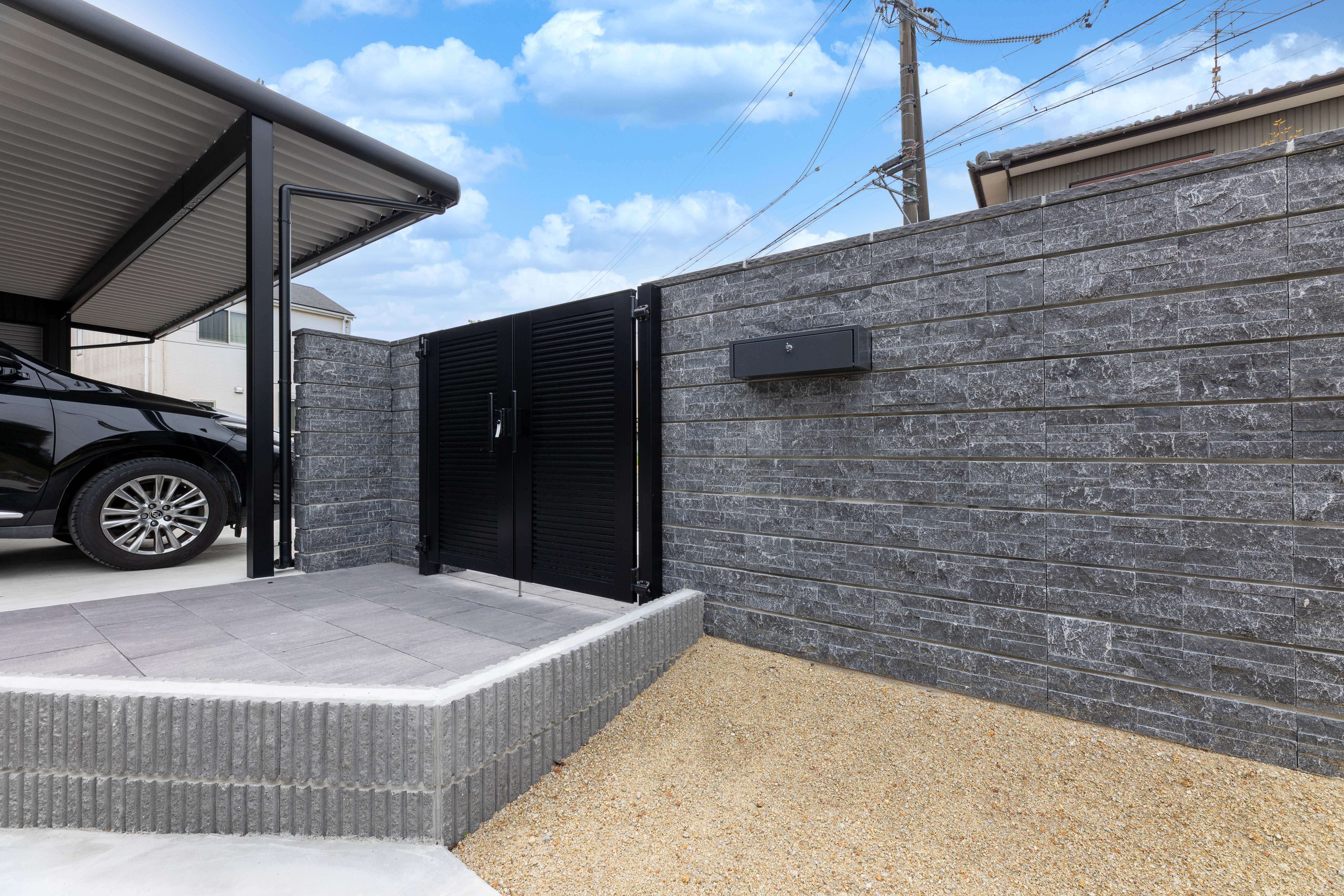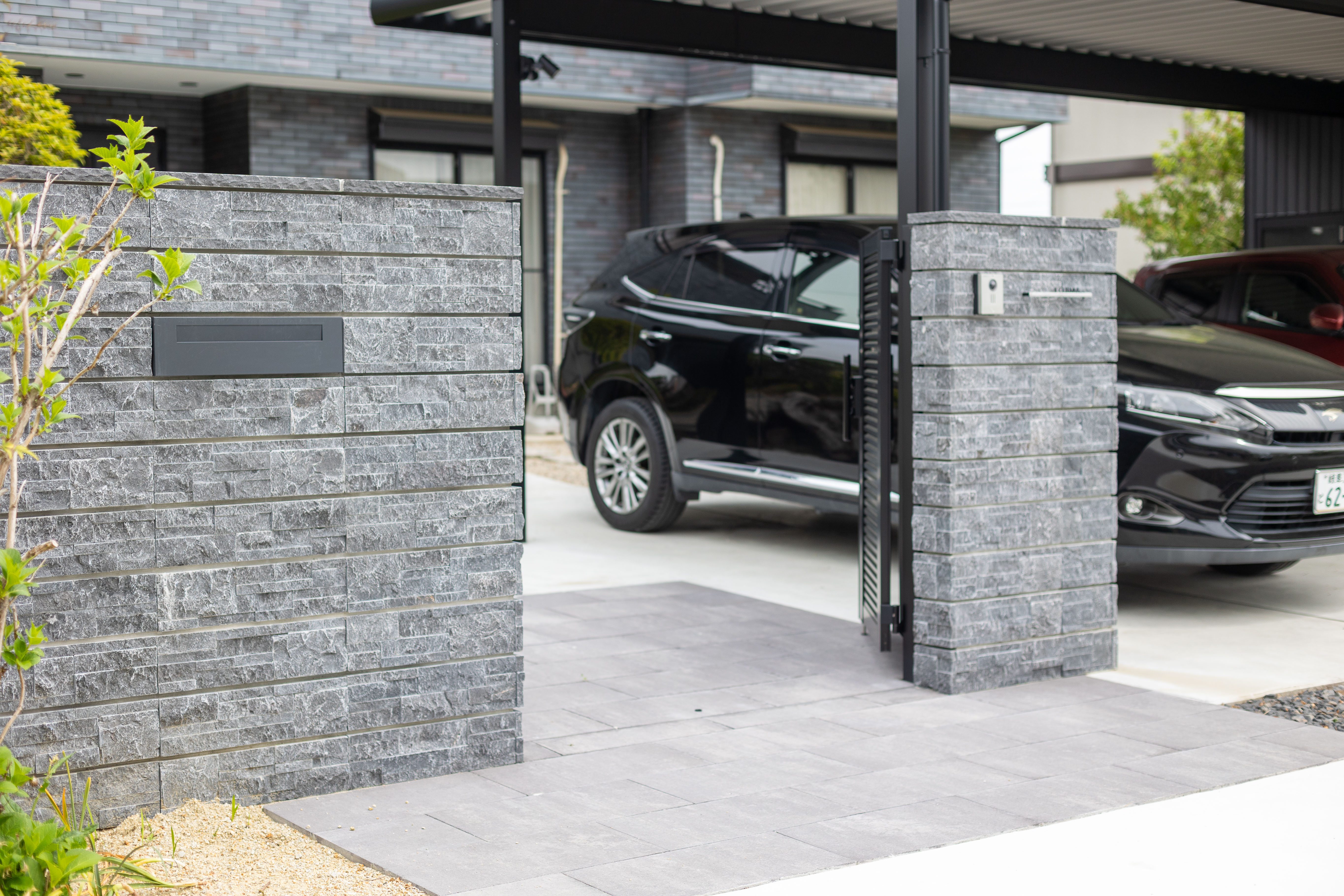 石貼りが美しい 門まわり